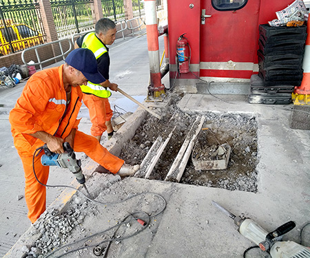 8月8日中午,省機(jī)電設(shè)計(jì)院施工人員率先對臺州收費(fèi)所一號車道進(jìn)行自助發(fā)卡機(jī)基礎(chǔ)施工工作。屆時(shí),該所兩個(gè)進(jìn)口車道都將安裝自助發(fā)卡機(jī),整個(gè)工期預(yù)計(jì)需要一個(gè)月時(shí)間。