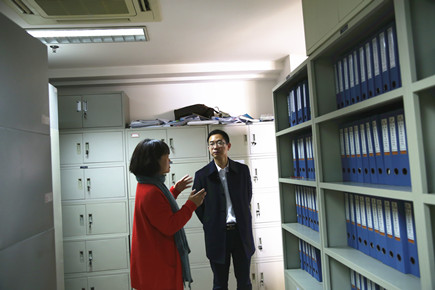 圖為公司副總經(jīng)理董阿林檢查工程部檔案室
