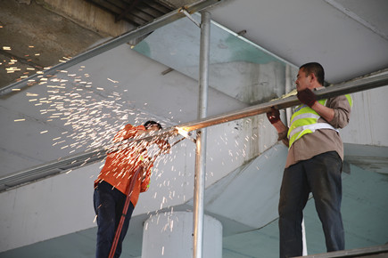 圖為公司安保部負責人與高速路政人員在現(xiàn)場指導拆除作業(yè)