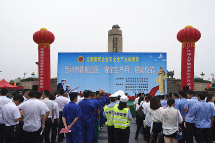 公司參加臺(tái)州市“安全生產(chǎn)月”宣傳活動(dòng) 6月7日上午,公司響應(yīng)臺(tái)州市安全生產(chǎn)委員會(huì)“安全生產(chǎn)月”活動(dòng)號(hào)召,在市國(guó)資委的組織下,積極參加市安委會(huì)、椒江區(qū)安委會(huì)聯(lián)合主辦的臺(tái)州市暨椒江區(qū)“安全生產(chǎn)月”啟動(dòng)儀式。