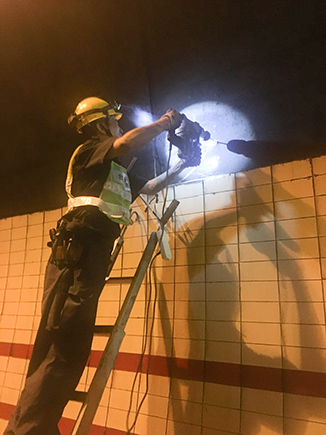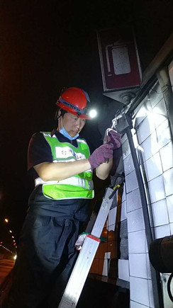 圖為工作人員安裝消防燈燈泡 大溪嶺—湖霧嶺隧道全長4116米,為保障隧道內(nèi)行車安全、暢通、舒適,定期組織安排清洗隧道兩壁墻體、邊溝,檢修內(nèi)部各項機電設(shè)施成了維養(yǎng)中心每季必不可少的工作之一。而每次清洗檢修必將涉及封道,為最大程度減少因封道對社會造成的負面影響,中心工作人員早在一周前就對隧道內(nèi)各項損壞機電設(shè)備進行摸底統(tǒng)計,以便合理制定維修方案和安排施工人員。 12號早上7點,隨著封道工作就緒,兩組清洗隊伍分別從隧道中部開始向兩頭清洗,六組專業(yè)燈具維修人員站在貨車腳手架上由北往南逐個推進,發(fā)現(xiàn)一盞修復(fù)一盞,或更換燈管、或更換觸發(fā)器、或更換鎮(zhèn)流器,對于一些同時有多個配件壞死或腐蝕嚴重的燈具就直接采取整體更換措施,大大提高了工作效率。而中心工作人員除了現(xiàn)場全程協(xié)調(diào)管理以外,還負責修復(fù)隧道兩壁逃生標志及報警電話等多個指示牌。按照之前制定的計劃,六人兵分兩組由隧道兩頭分別向中間修復(fù),這樣既能與其他工作同時進行又不造成相互干擾。另外一人則配合隧道所一起在登高車協(xié)助下,對洞內(nèi)各類攝像頭進行逐個清理,全場人員各司其職,各盡其責,現(xiàn)場一派忙碌的景象。 4公里多長的隧道,由于流動性差,洞內(nèi)空氣質(zhì)量比霧霾嚴重數(shù)倍,僅一只口罩根本凈化不了廢氣,但由于時間緊,任務(wù)重,中心隊員和施工人員顧不上惡劣的環(huán)境,努力和時間賽跑,兩日下來共修復(fù)(清理)損壞燈具100余套,各類標志指示牌40余塊,攝像頭30余個,恢復(fù)了隧道內(nèi)各項機電設(shè)施的正常運行,排除一切安全隱患,有效保證了隧道安全暢通。 項寅曉