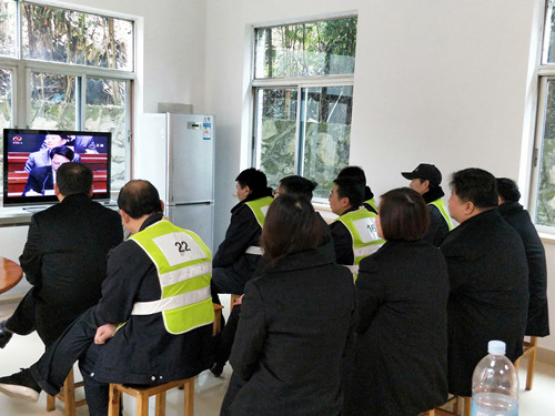 圖為臺州收費(fèi)所員工收看現(xiàn)場