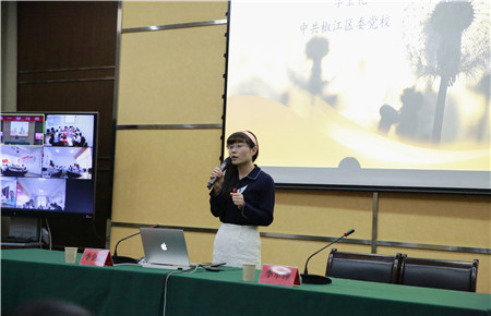 圖為椒江區(qū)委黨校李金花老師作專題報(bào)告