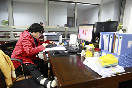 10月21日,腳不慎扭傷而無法行走的李茜茜,考慮到股權(quán)收購(gòu)正處于緊要關(guān)頭,工作量大,數(shù)據(jù)處理復(fù)雜,人手緊缺等各方因素,她放心不下,堅(jiān)持帶傷上崗,并主動(dòng)要求家人到單位照顧日常生活,集團(tuán)辦公室專門調(diào)出休息室供其臨時(shí)使用。