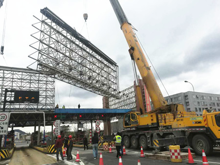 因拆除作業(yè)涉及車道臨時封閉,又不能影響進出高速車輛的通行,如何兼顧施工和萬千過往人民的安全,楊金梁的心里得有一把清楚的標(biāo)尺。11月22日,天還未亮,他就從椒江急急地趕往臺州收費站拆除現(xiàn)場。6點始,大噸位的吊機已放置在指定位置,施工人員安全帽、安全繩,收費站內(nèi)外廣場引導(dǎo)員,高速主線封道預(yù)警車等是否都已到位,楊金梁逐一迅速檢查,絲毫不敢遺漏任一安全環(huán)節(jié)。