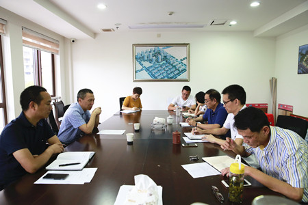 圖為集團(tuán)副董事長(zhǎng)、總經(jīng)理張建平認(rèn)真聽取相關(guān)人員下階段工作安排匯報(bào)